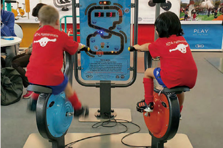운동기구(사이클)에 레이싱 게임을 접목하여 사용자에게 보다 재미있고 친구와 함께 운동을 즐길 수 있도록 도와줍니다.
